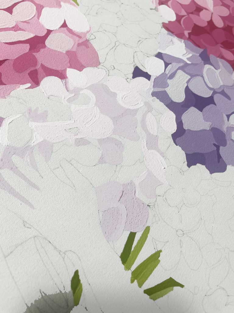 As a commissioned work, this painting also speaks to how personal narratives shape universal ideas. While the concept of self-love remains central, the choice of hydrangeas allows the work to resonate with a more nuanced emotional landscape—one where care, gratitude, and vulnerability are equally powerful expressions of autonomy.